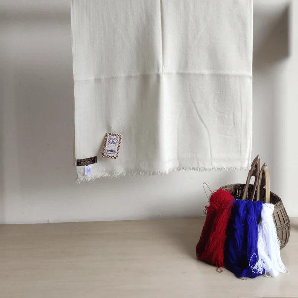 This oversized cream scarf, handwoven from soft, Woolmark certified merino and Angora Blended wool in a twill weave, is the ultimate accessory for men. Featuring artisanal hand-knotted fringes, it’s ethically made in small batches, offering unparalleled warmth and style for layering, travel, meditation, or everyday wear. Its versatile design makes it a thoughtful gift for any occasion.